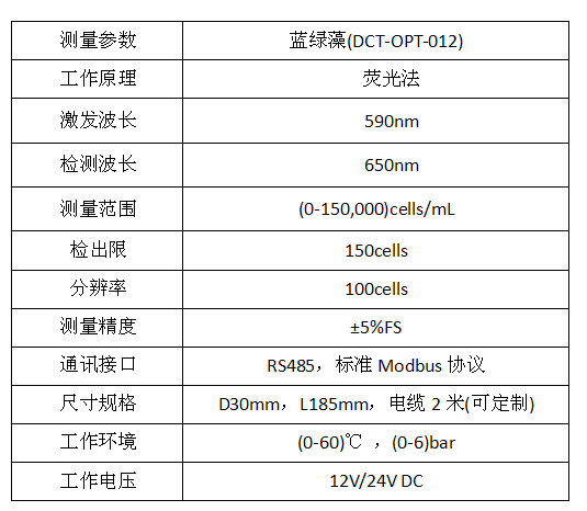 DCT-OPT-012是一款采用RS485通訊接口和標準Modbus協(xié)議,自帶清洗刷的藍綠藻智能電極。基于相干熒光檢測技術(shù),具有選擇性好,抗干擾強、靈敏度高、無需預(yù)處理、測量快速等優(yōu)點。隨機附送專業(yè)操作軟件,具有校準、記錄、分析、診斷等功能。
